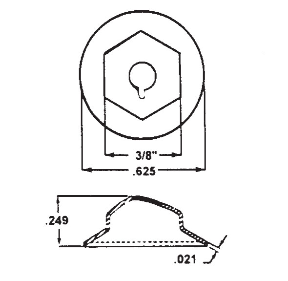 With 10-24 weld studs. One-piece washer-type locknut combination serving as hex nut, lockwasher and flat washer. Locking design eliminates back-off due to vibration and thermal stress.